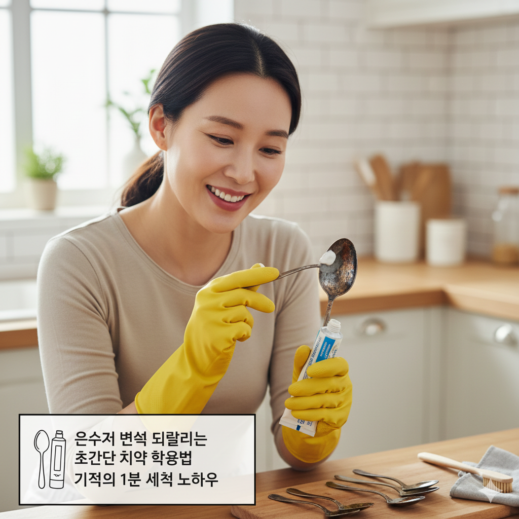 "세척제 살 돈 아끼세요. 치약 한 줄이면 당신의 은수저가 다시 숨을 쉽니다."